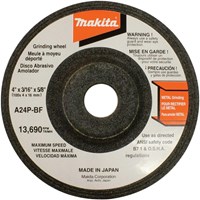 Makita 4" Abrasive Grinding Wheels feature an innovative grain structure engineered for optimum performance, efficient material removal and longer wheel life. These type 27 wheels are constructed of high quality aluminum oxide abrasive grains for increased performance and added durability. These wheels are designed to be used on most 4" Angle Grinders for general grinding of ferrous metals.